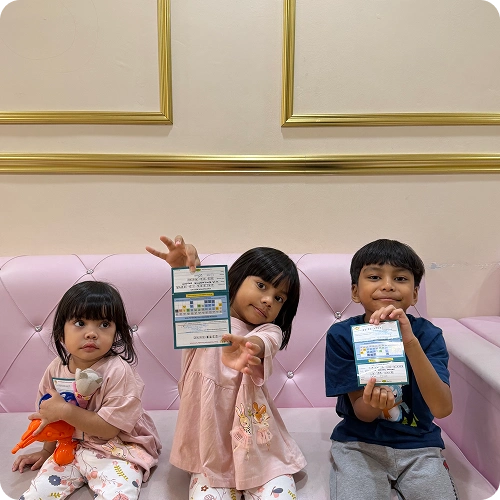 Kami ikuti jadual vaksinasi terkini dari Kementerian Kesihatan Malaysia (KKM) dan juga menawarkan vaksin pilihan untuk perlindungan tambahan. Setiap vaksin dikendalikan dengan berhati-hati dan disimpan pada suhu yang betul untuk memastikan keberkesanan maksimum.